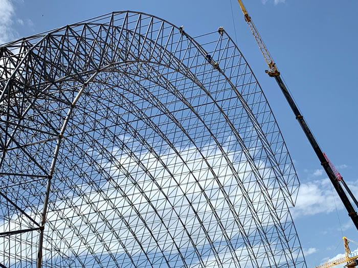 (2)网架加工前应对现场尺寸进行复测,确认无误后方可进行加工、安装;网架制作、运输、安装应遵守《空间网格结构技术规程》JGJ7-2010、《钢网架广州螺栓球节点》JG/T 10-2009、《钢网架广州螺栓球节点用高强度螺栓》 GB/T 16939-2016、《广州钢结构广州工程广州施工规范》 GB50755-2012、《广州钢结构广州工程施工质量验收标准》 GB50205-2020。